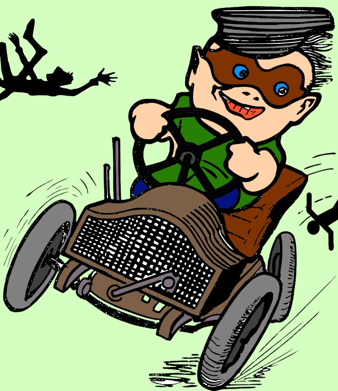 Med store auge, og full av beundring for min beste kamerat, tok eg takknemleg i mot hjula og lova på ære og samvit at eg, om ikkje anna, iallfall skulle male fjølene i ein annar farge.
